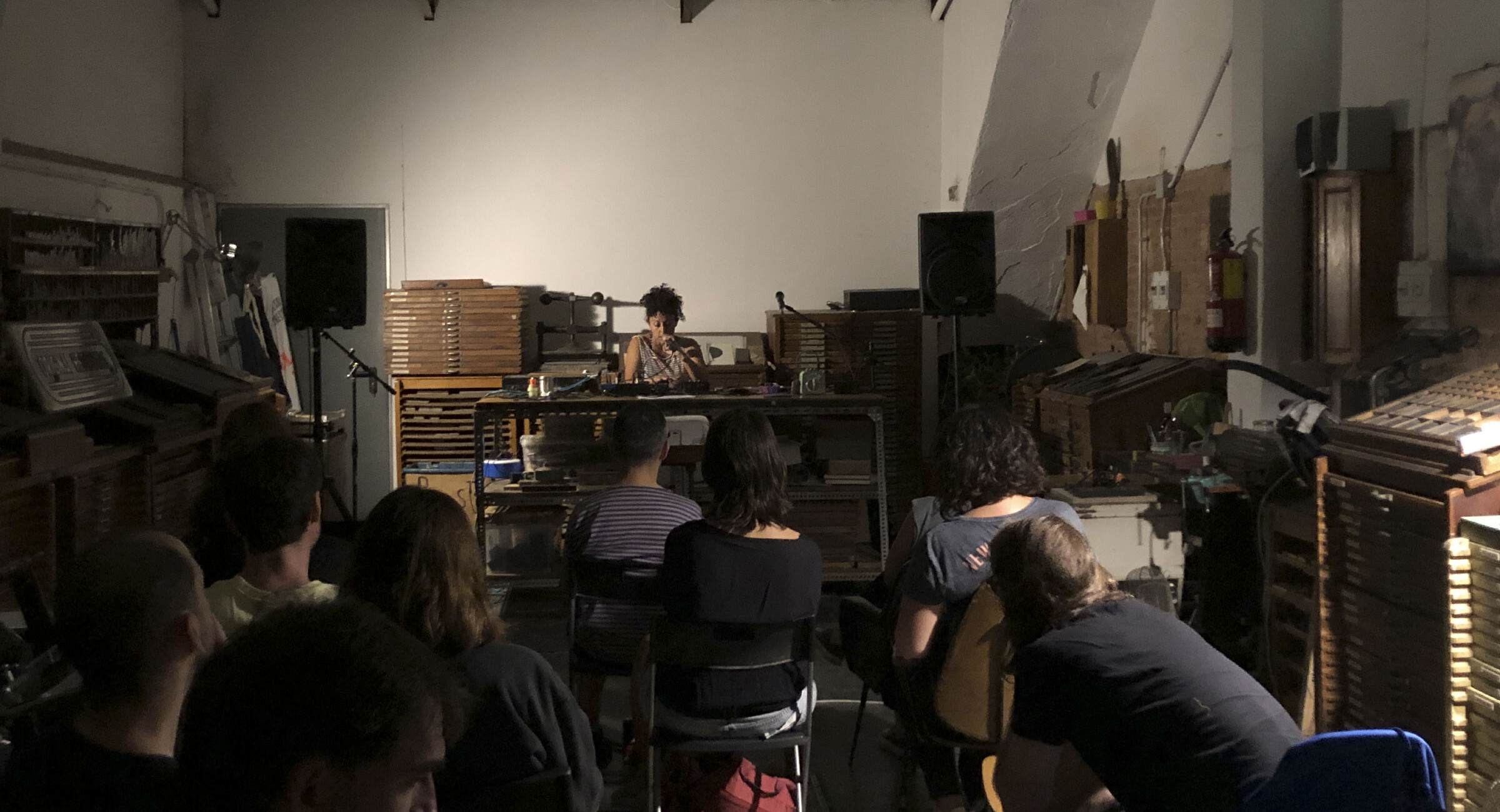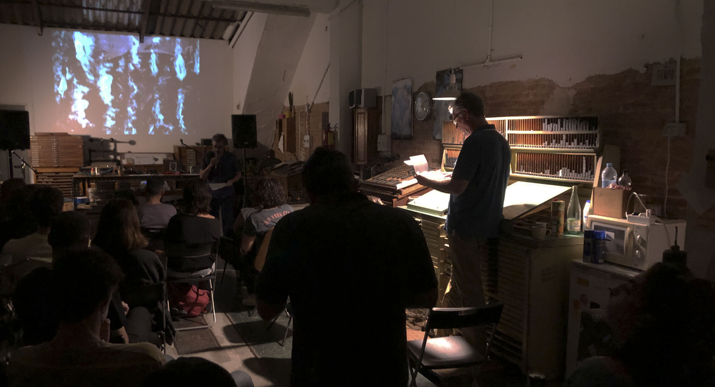 Acciones sonhoras és el cicle de poesia experimental que Sonhoras organitza mensualment. Cada mes es convida un poeta a passar un dia al taller per produir una peça d’obra gràfica de tirada limitada, amb edició signada i edició numerada, i a la nit s’obren les portes al públic amb l’actuació i la presentació de la peça.