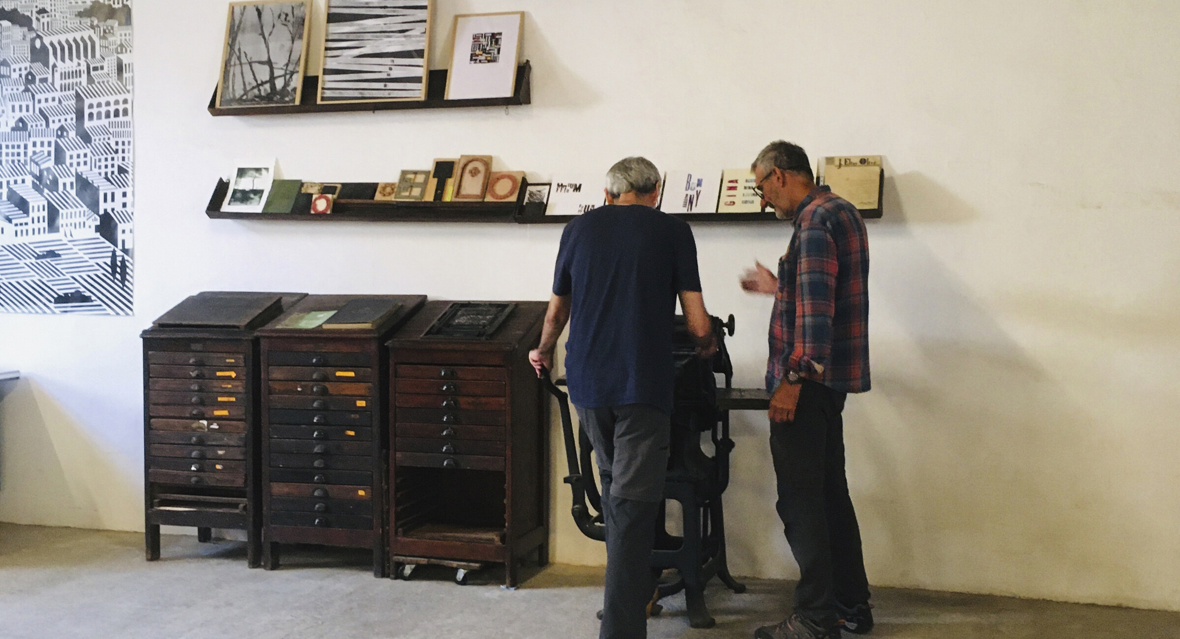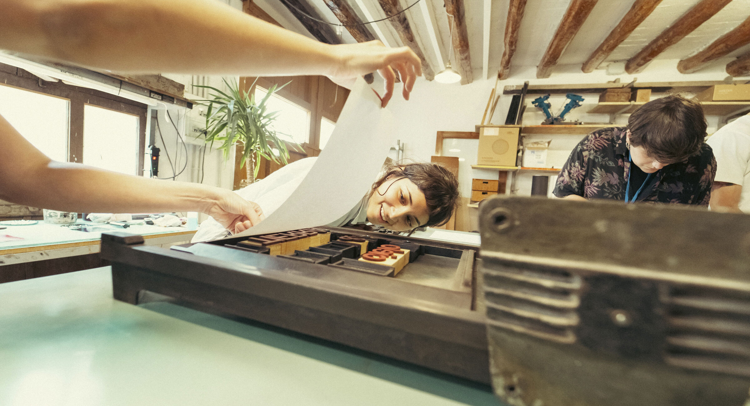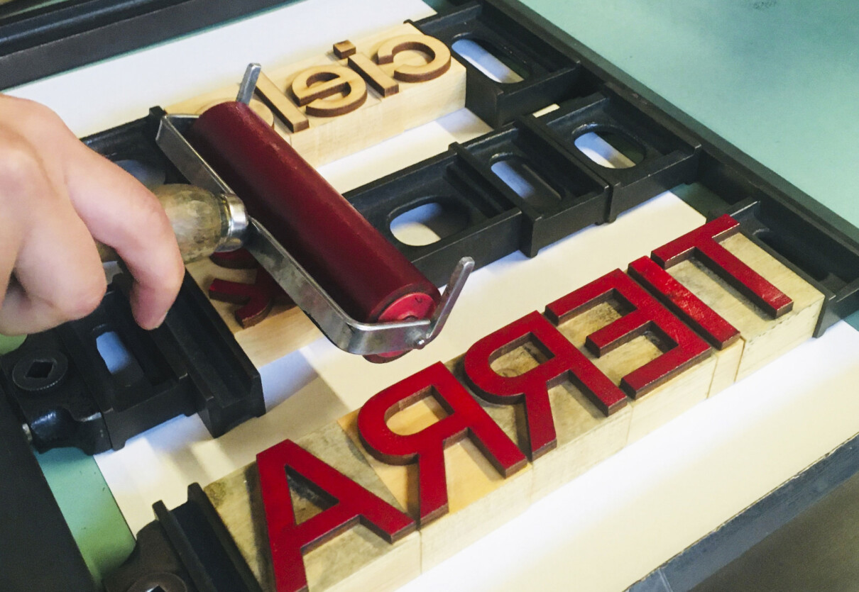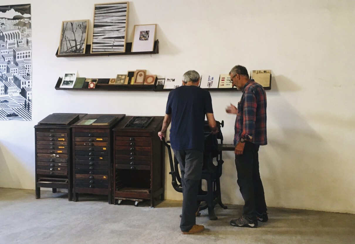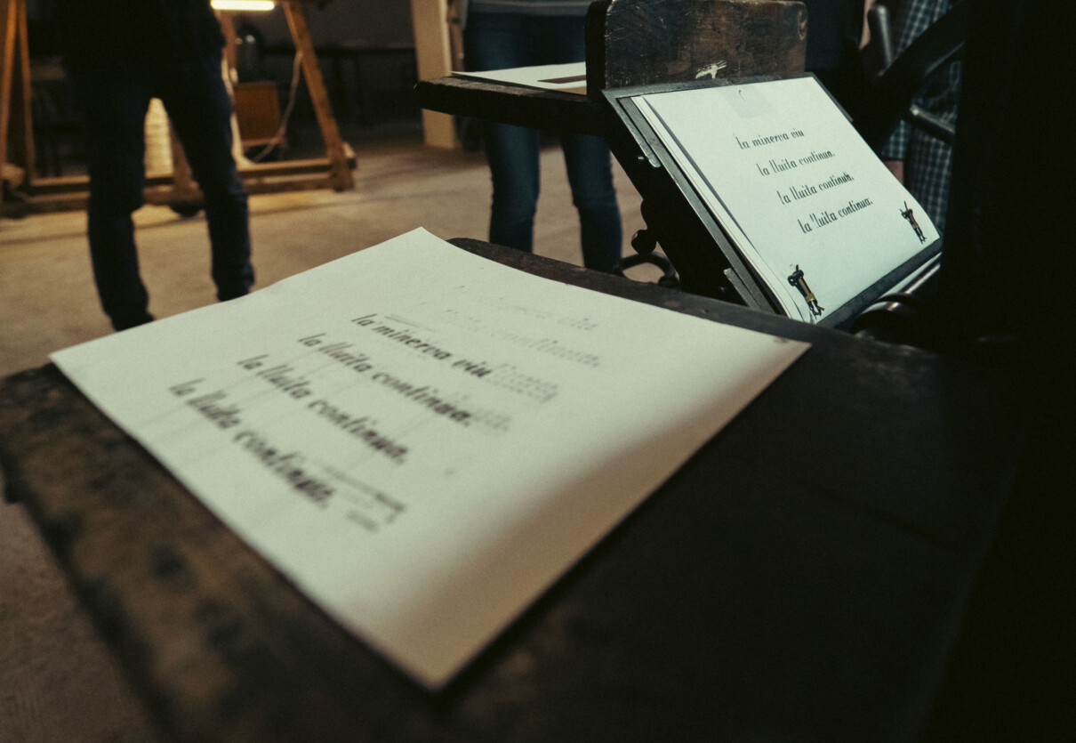 Tipografia i autoedició a La MaCa. Presentació i taller a càrrec de L’Automàtica per al col·lectiu de dissenyadors gràfics, artistes i il·lustradors. Durant la xerrada es va presentar l’origen, el funcionament i la identitat de l’Automàtica. Posteriorment, es va fer un taller d’impressió amb tòrcul i la tipografia que vam dissenyar utilitzant tècniques de fabricació digital. També es va activar i va posar en marxa una minerva de pedal que tenien al taller, imprimint un motlle fet allà mateix per a l’ocasió.