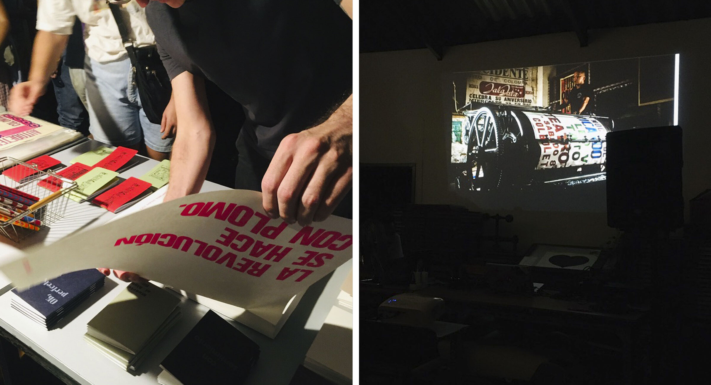 Un encontre de 3 projectes que pivoten al voltant de la impremta i el col·lectiu, La Linterna, L´Automàtica i la Impremta col·lectiva de Can Batlló. Una jornada de festa, xerrada i mostra en viu d’aquestes tres iniciatives culturals, arrelades als seus barris i a la persistència d’un ofici, aprofitant la visita a Barcelona dels companys colombians de La Linterna.