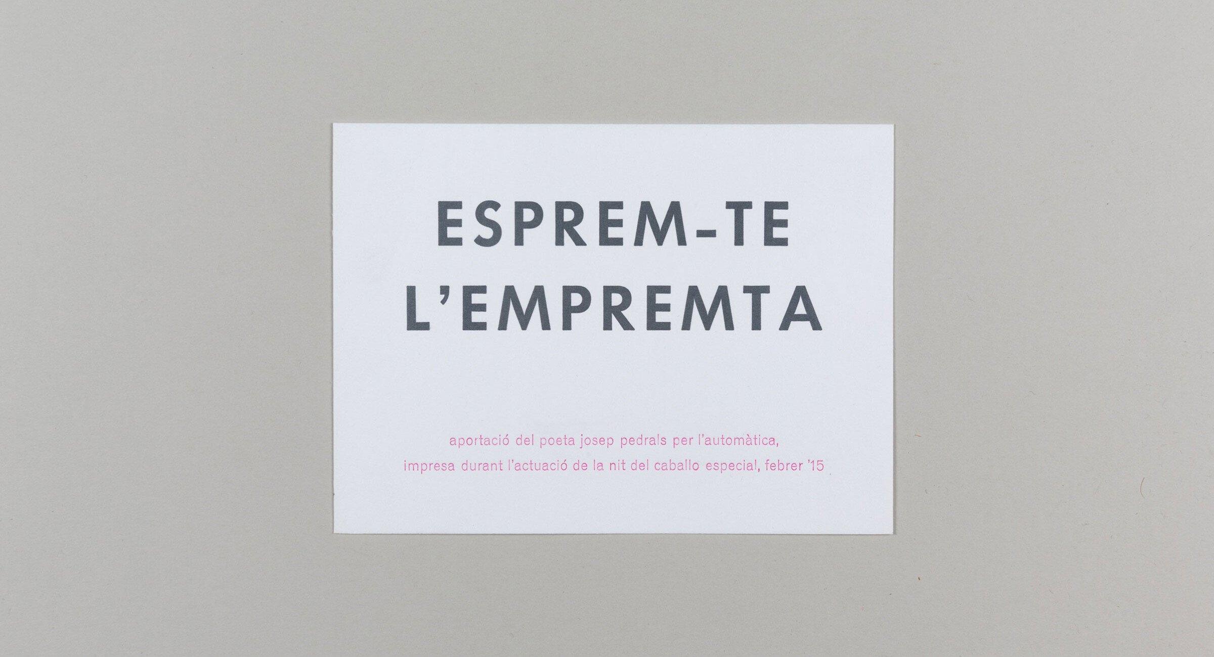 Aportación del poeta Josep Predrals para L’Automàtica, impresa durante la actuación de la Noche del Caballo Especial en febrero de 2015.