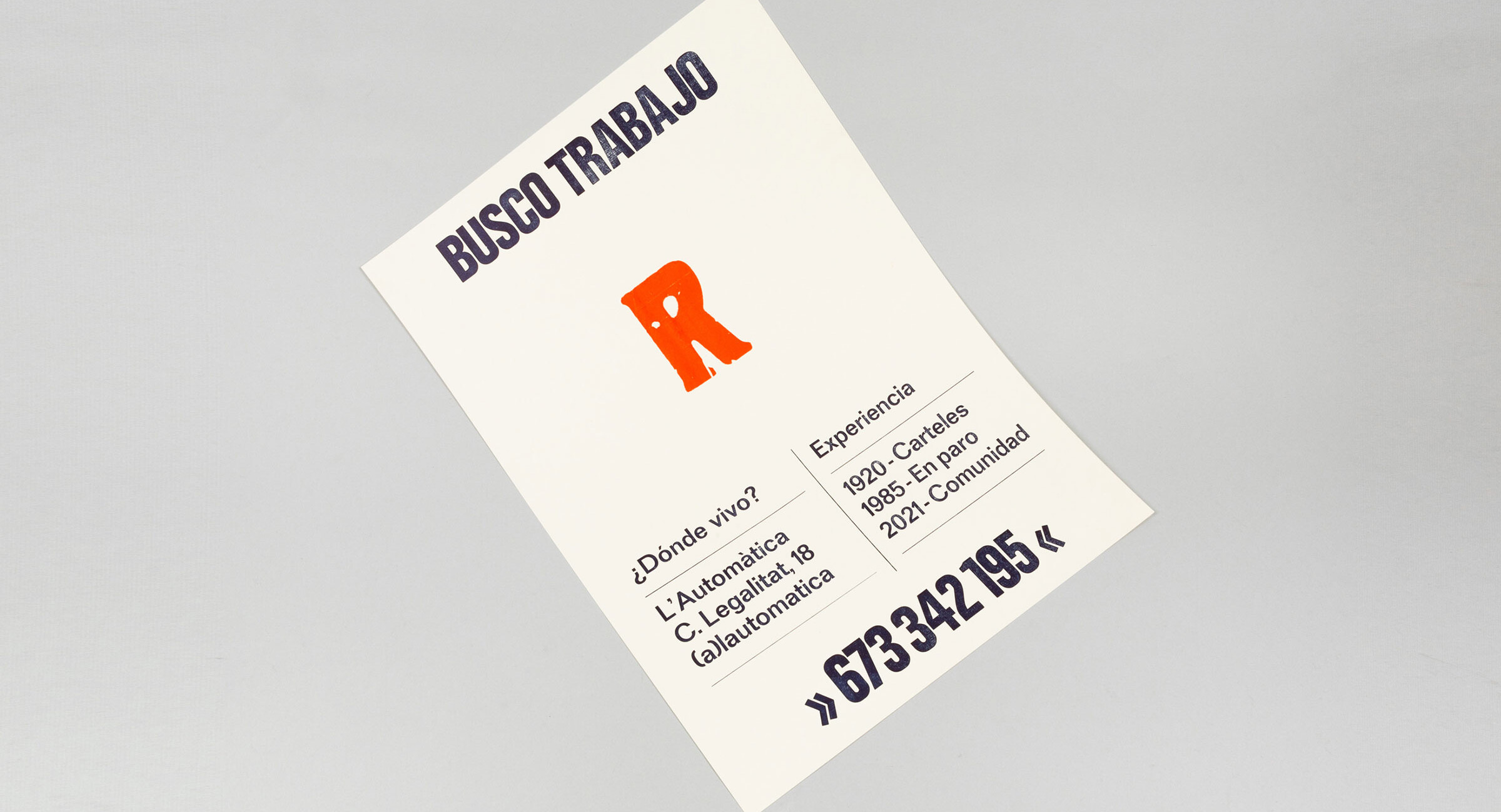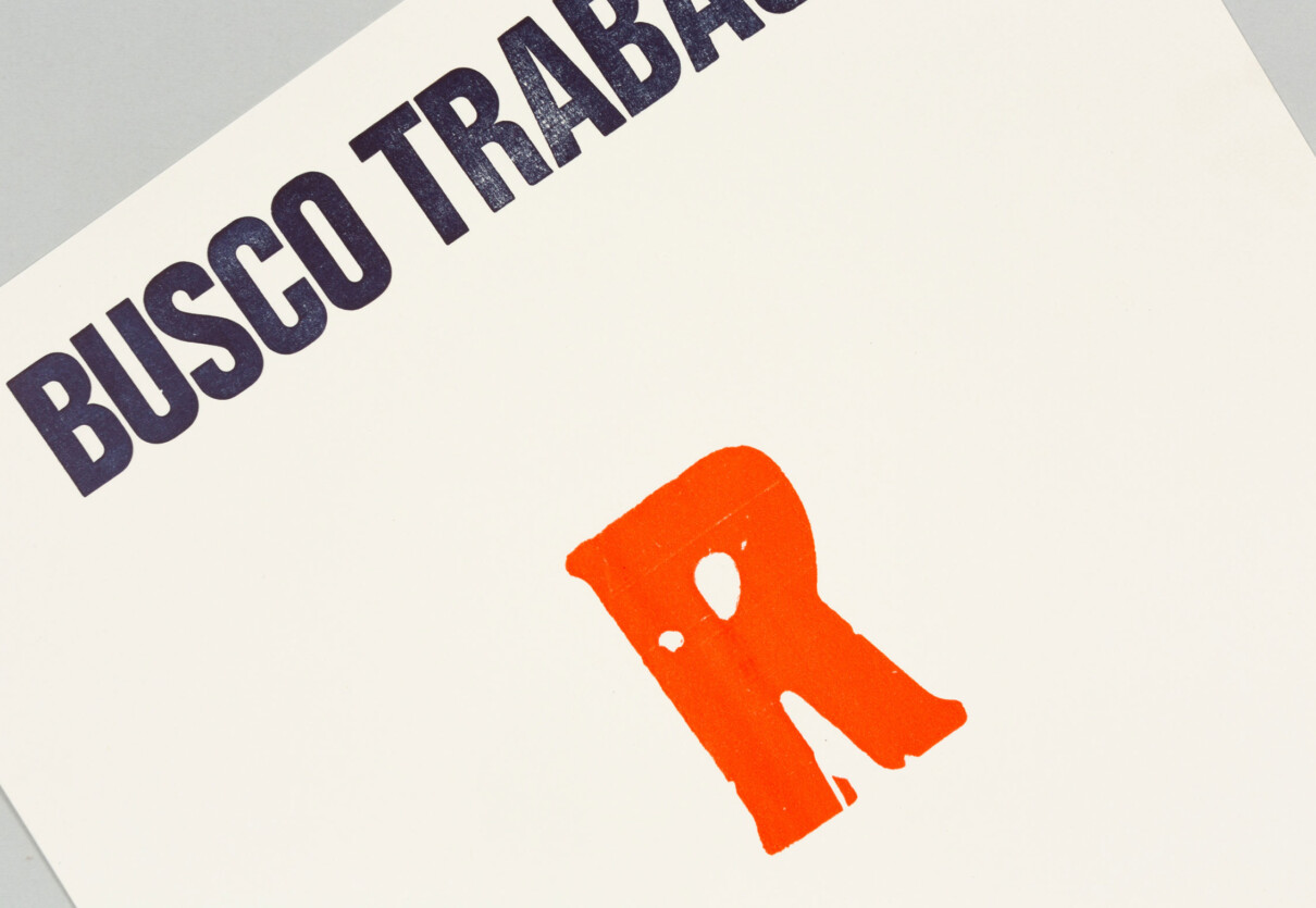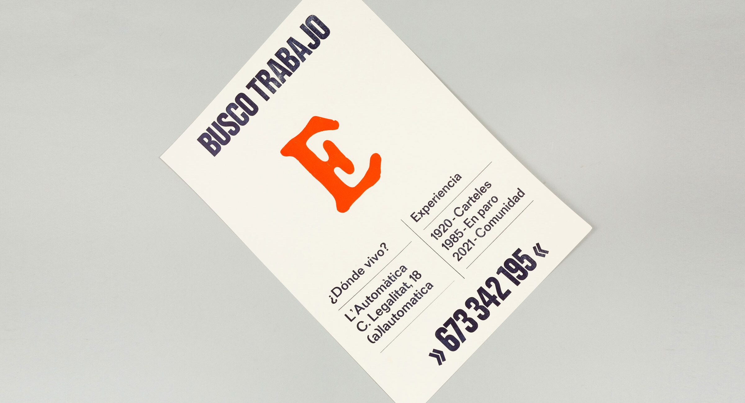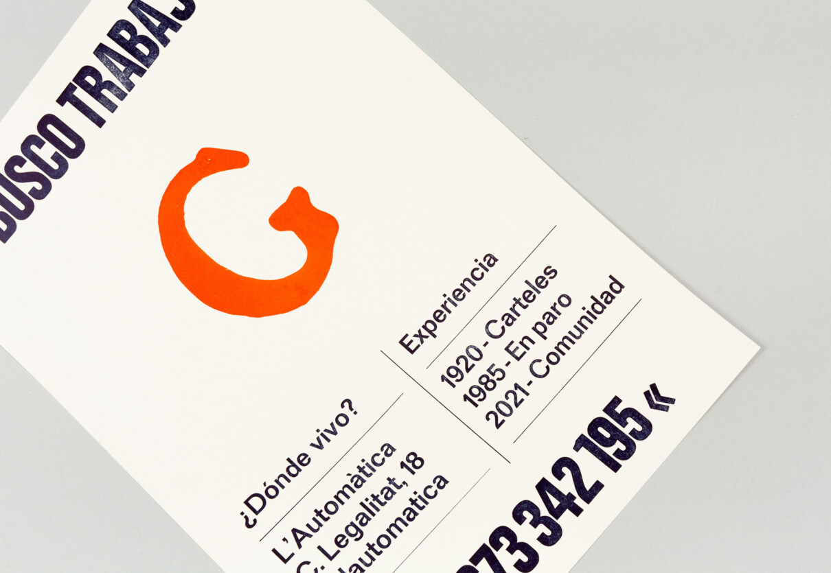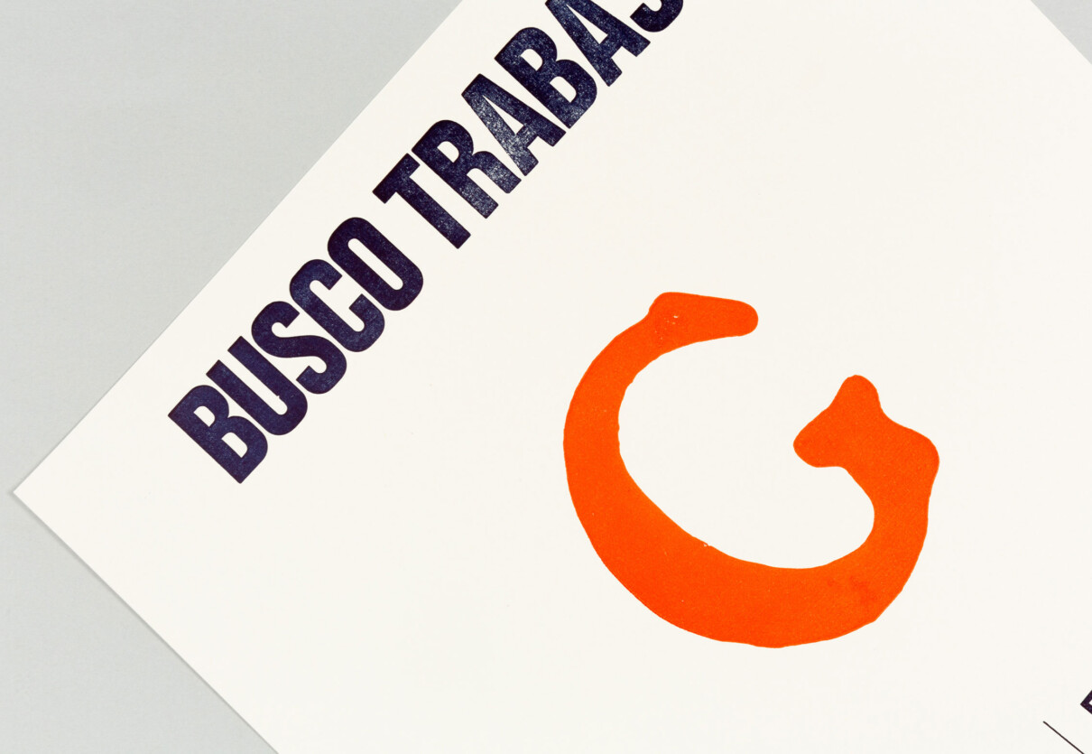 Taller personalitzat d’un dia amb Paul Rivenc. Es van fer diversos cartells fins a formar la paraula “gremi”. Forma part del seu treball de fi de carrera sobre impremtes tipogràfiques en actiu.