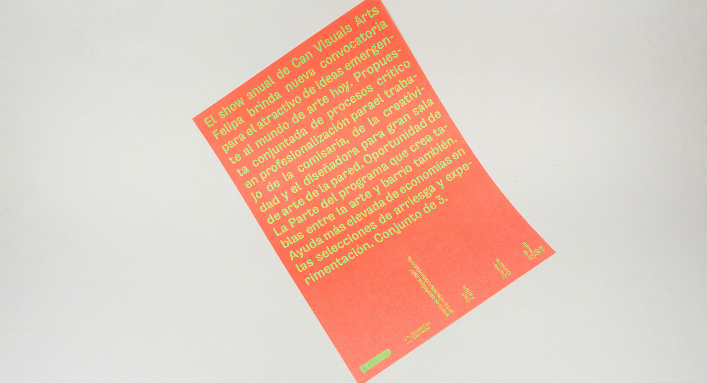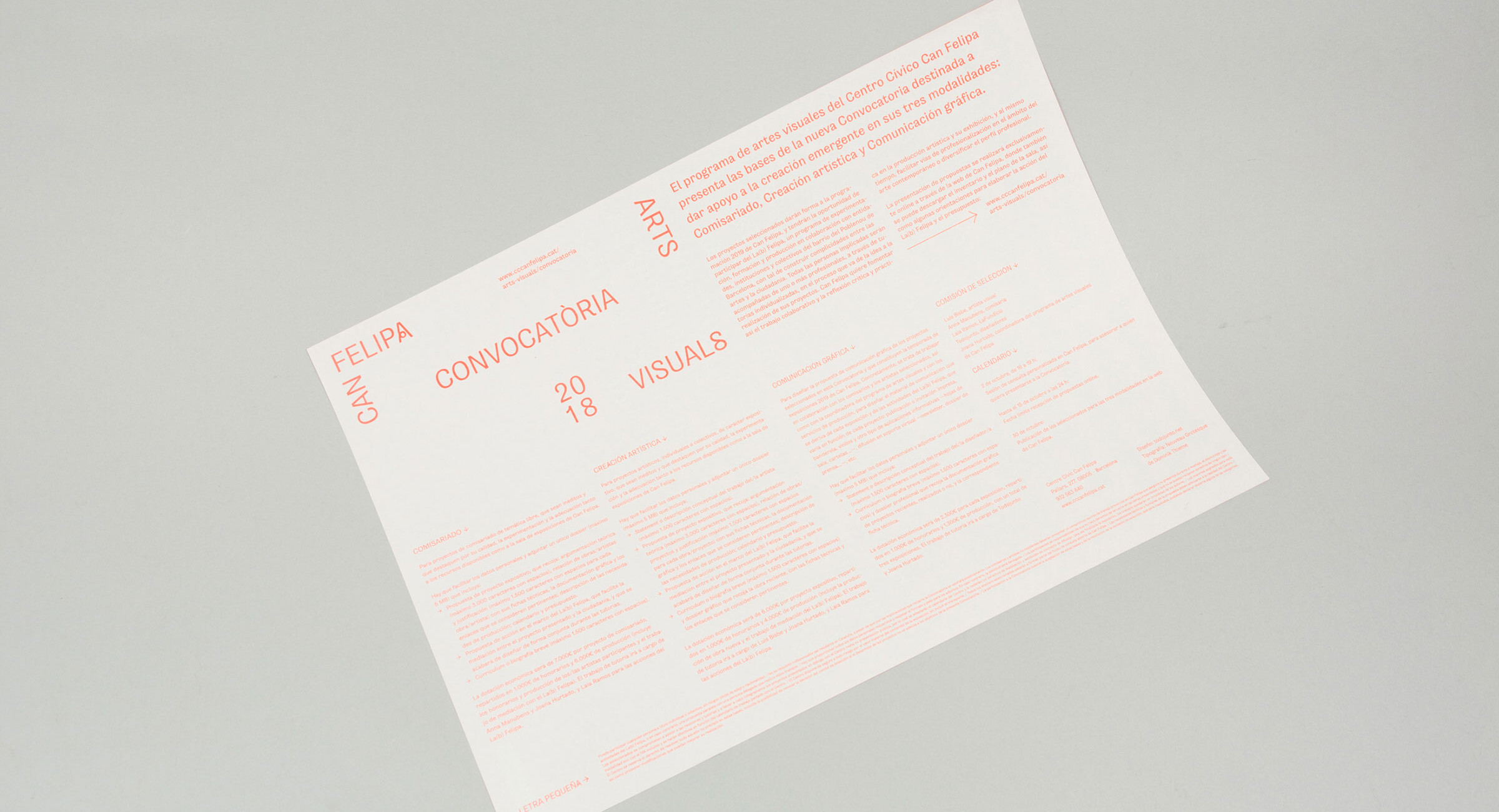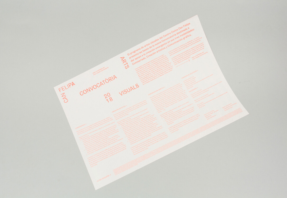 Convocatòria Arts Visuals Can Felipa Data de producció: 2018 Tipologia: Cartell / Fulletó Técnica: Òfset Tintes: 2 tintes Format: 297 x 420 mm Col·lectiu relacionat: Todojunto Imatges