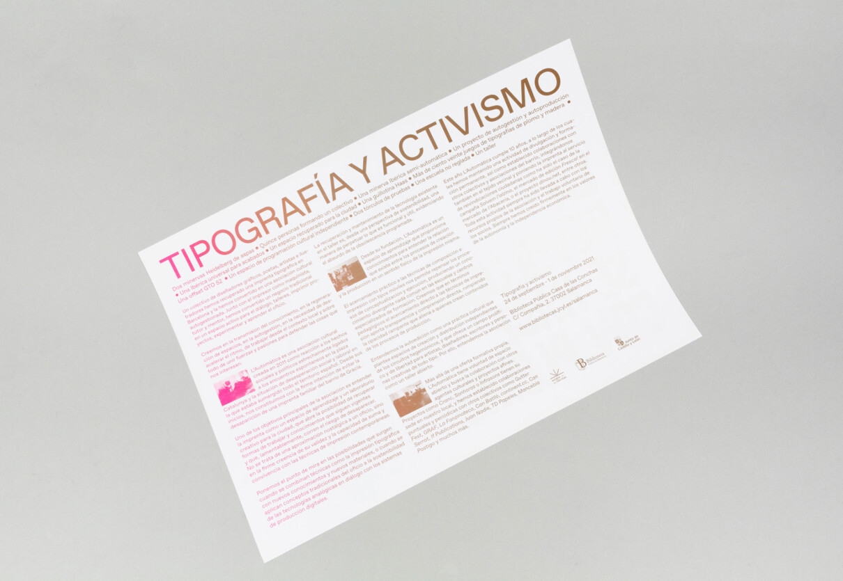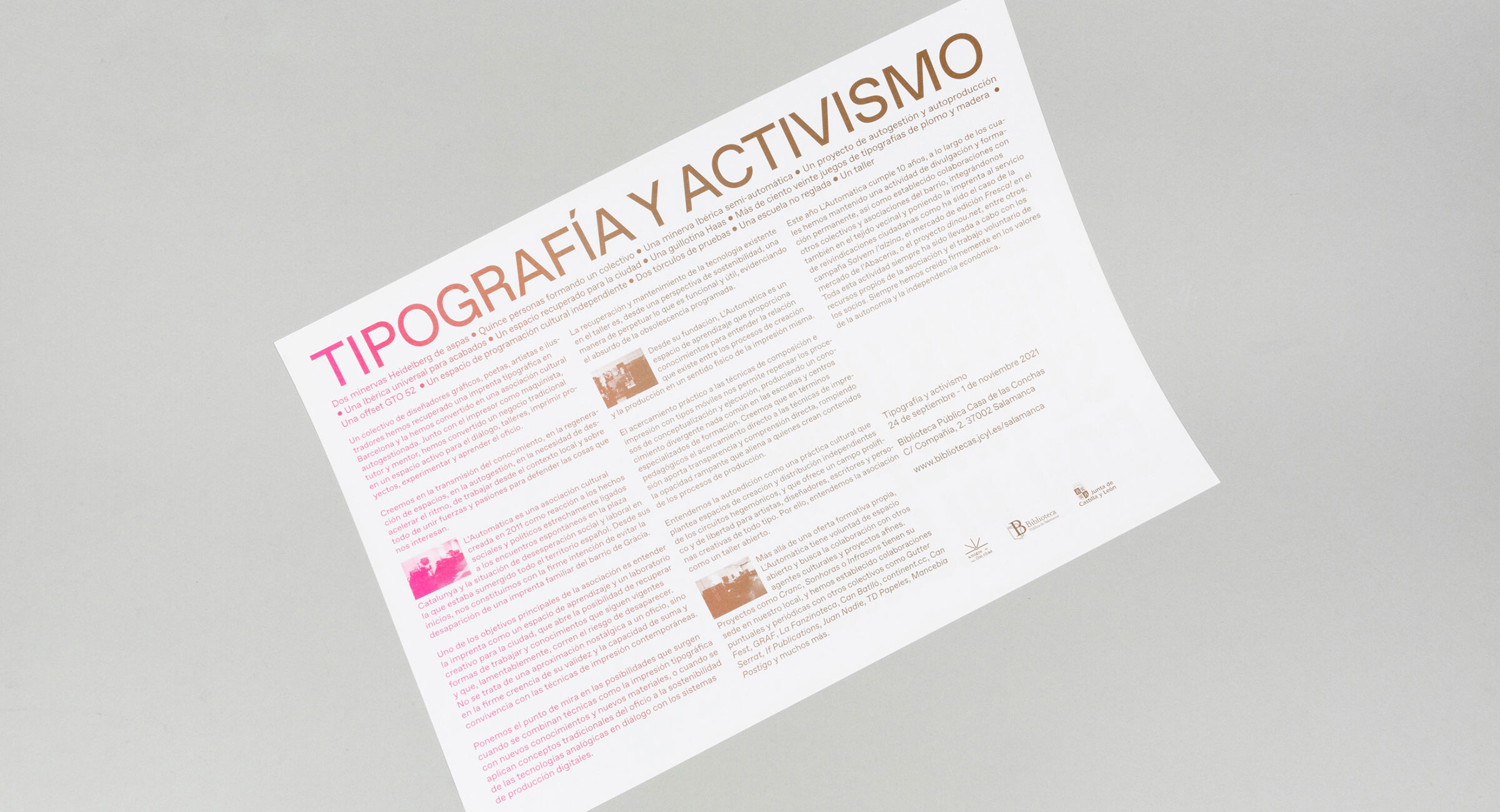 Full de sala de l’exposició sobre els 10 anys de L’Automàtica a la Casa de las Conchas de Salamanca. S’encolaren totes les còpies creant un tac que era a l’entrada de l’exposició, i que cada visitant podia arrencar.