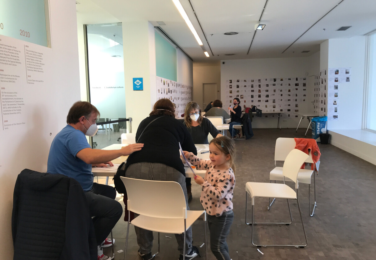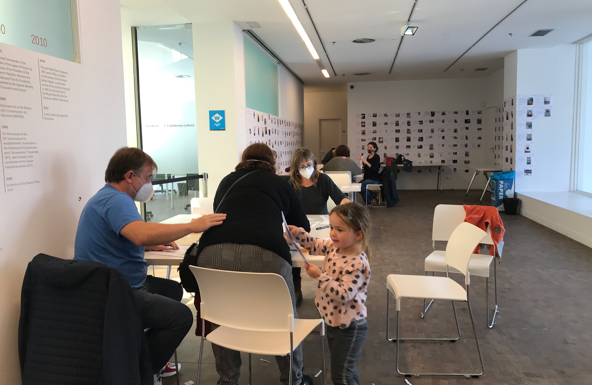 “Remena la taula” és un joc antic que forma part de la memòria de la seu de la Fundació Antoni Tàpies, i és que la neta de Francesc Simón ja hi jugava quan visitava el seu avi a l’editorial que antigament ocupava l’edifici.