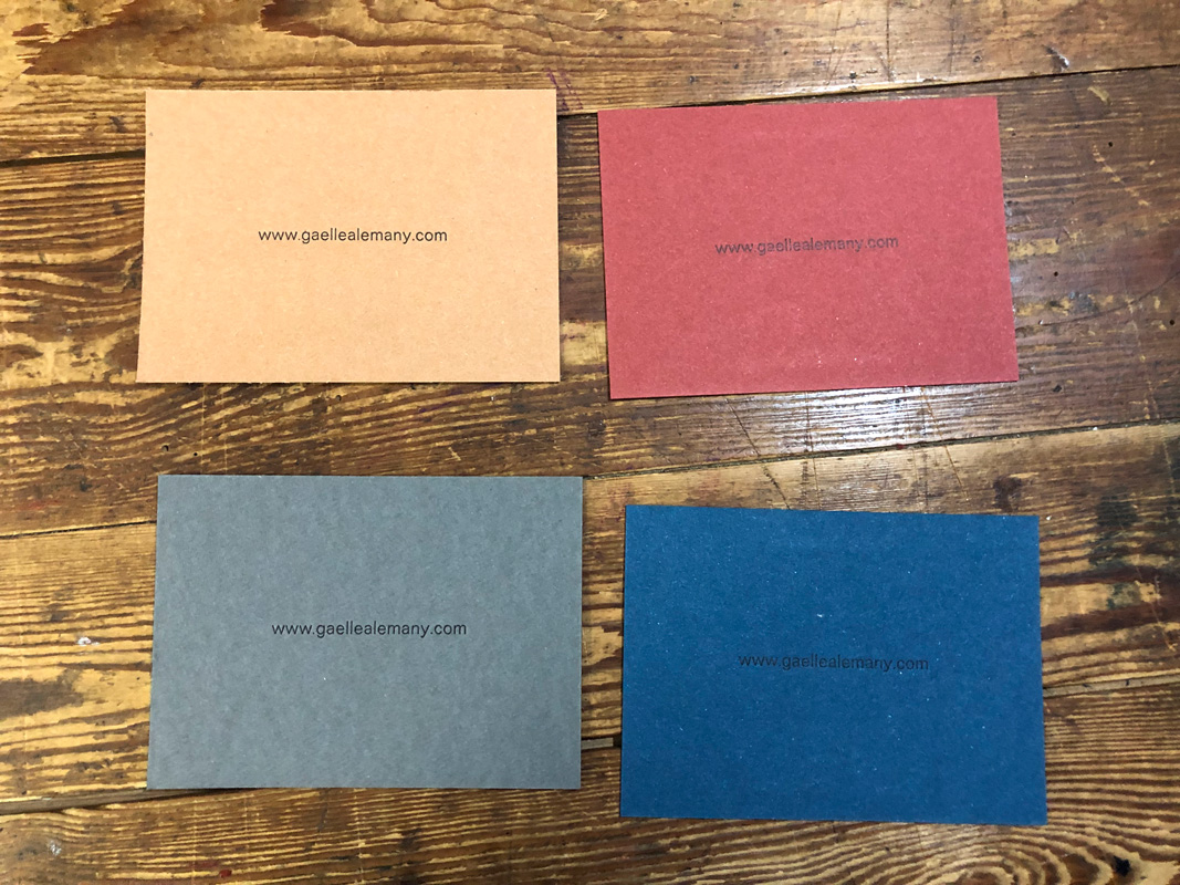 Taller personalitzat amb Gaëlle Alemany on vam compondre els motllos de text i vam imprimir les seves targetes personals a la Heidelberg d’aspes.