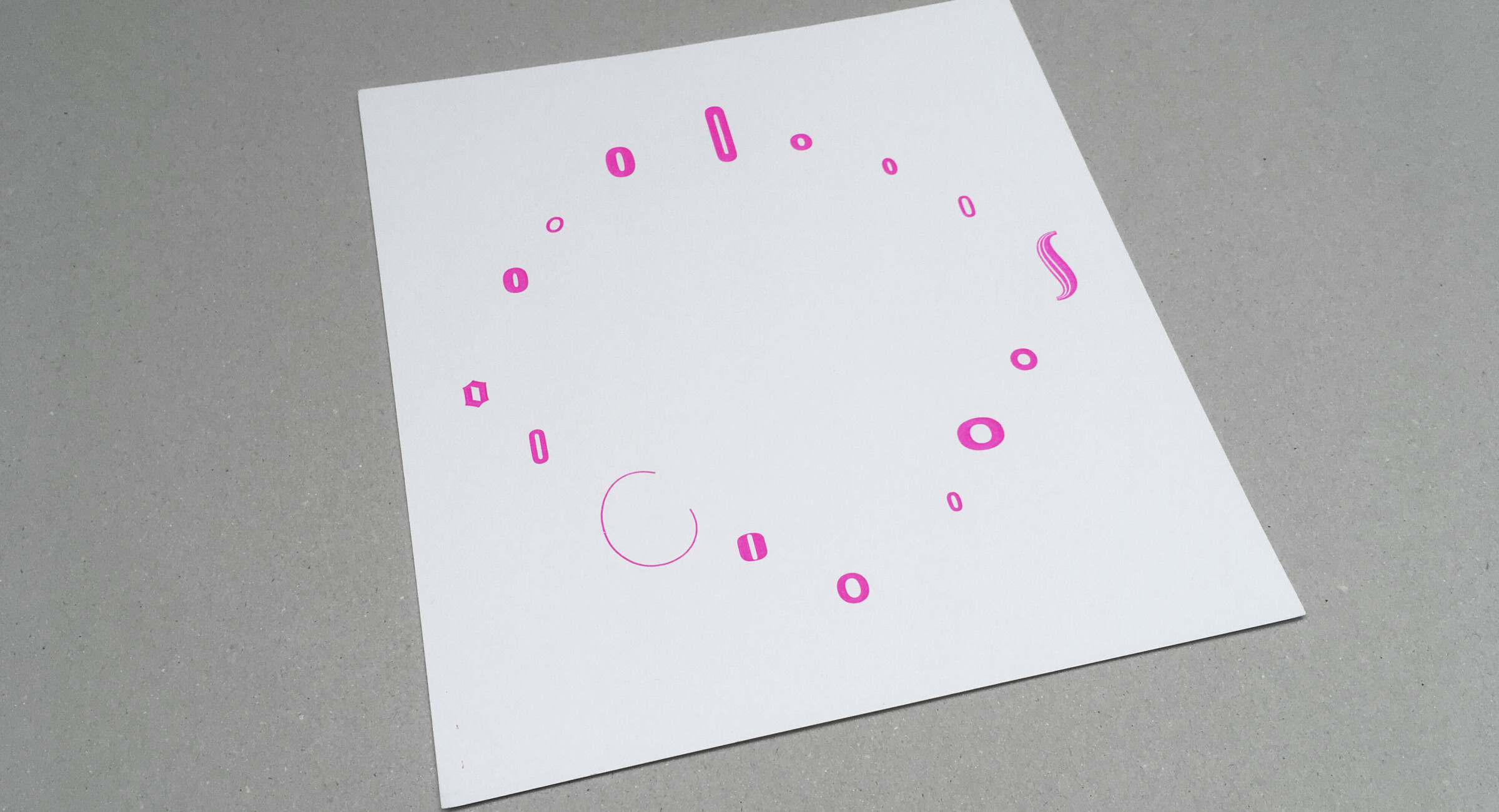 Reusltat del taller col·lectiu amb una composició jugant amb la idea de rellotge i l’S.O.S. compost amb os i esses de diferents tipografies i una peça de la SuperVeloz.
