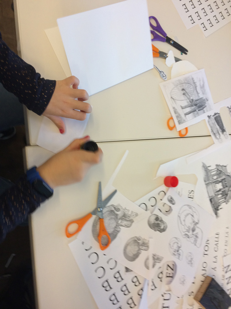 A través de les imatges i textos que hem trobat dels llibres impresos a l’editorial que hi ha a la biblioteca de la Fundació, hem fet un catàleg d’imatges i tipografies per poder-les retallar i compondre una felicitació de Nadal.