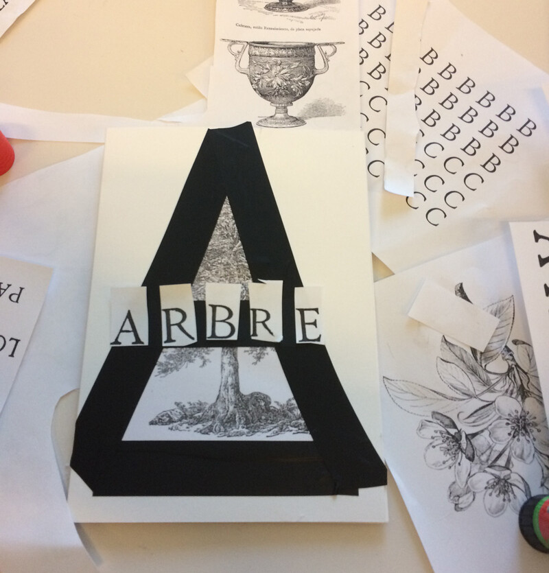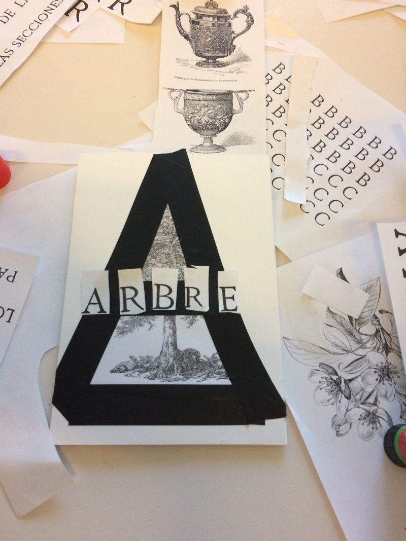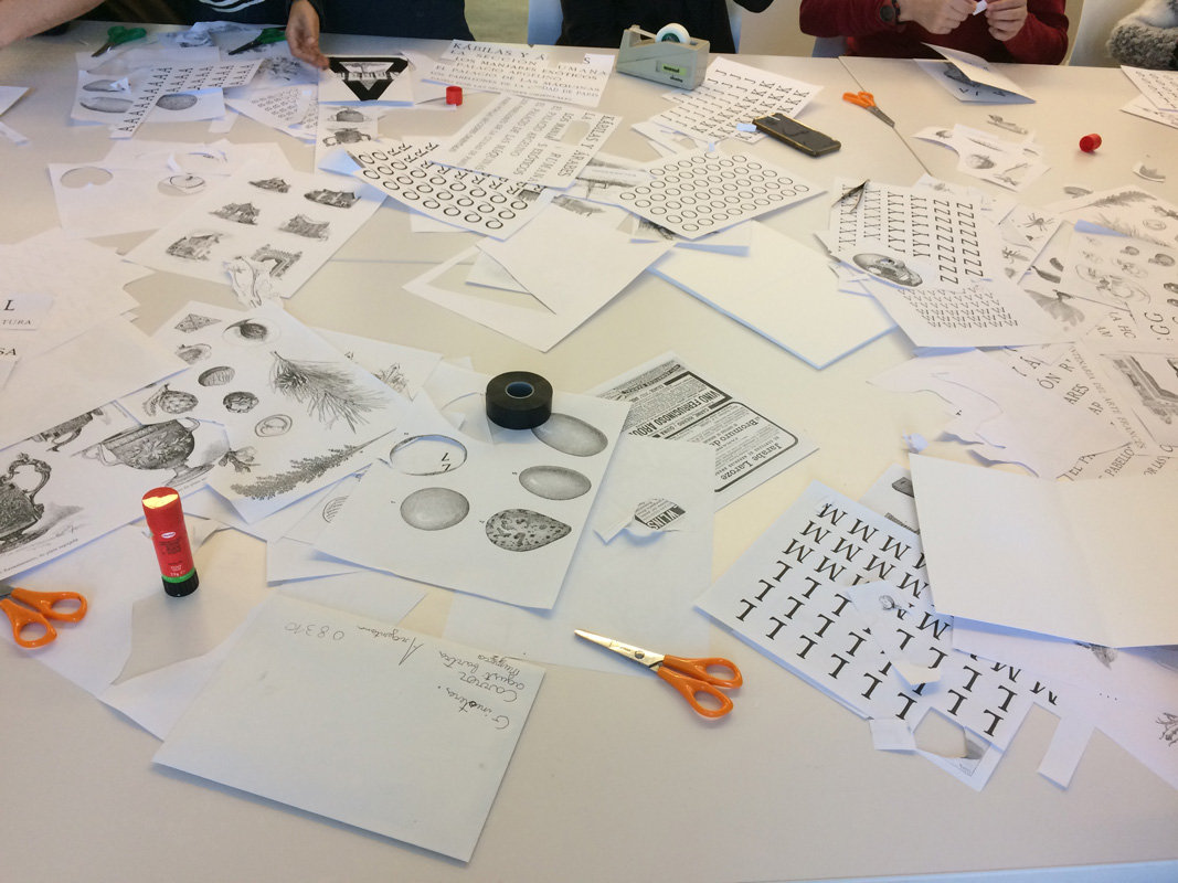 Volem proposar recuperar aquest joc que comença amb una taula plena d’imatges i tipografies, a partir de les quals farem noves creacions.
