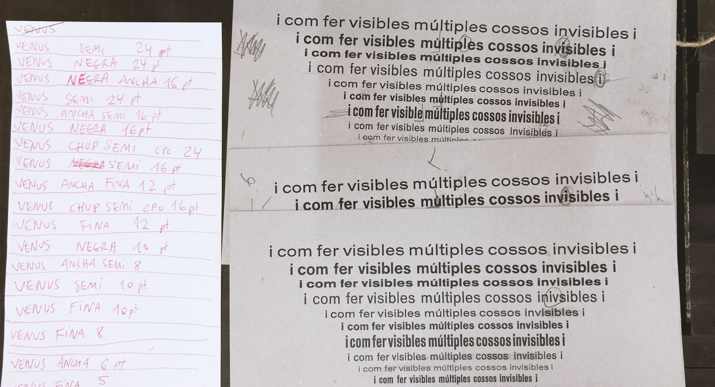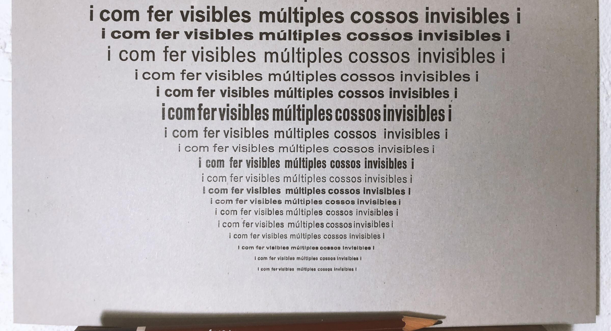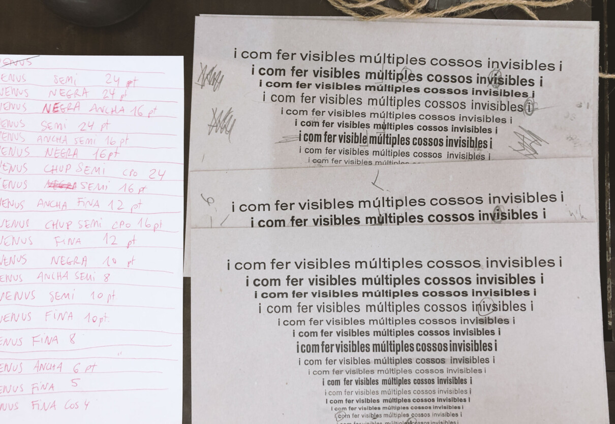 En aquest taller es va fer una peça al voltant dels cossos invisibilitzats i diversos des d’una òptica feminista, compost a manera de colofó barroc o estructura visual, repetint la mateixa frase amb tots els cossos de lletra disponibles d’una mateixa família, la Venus.