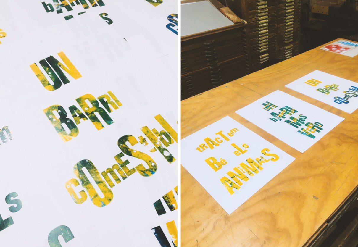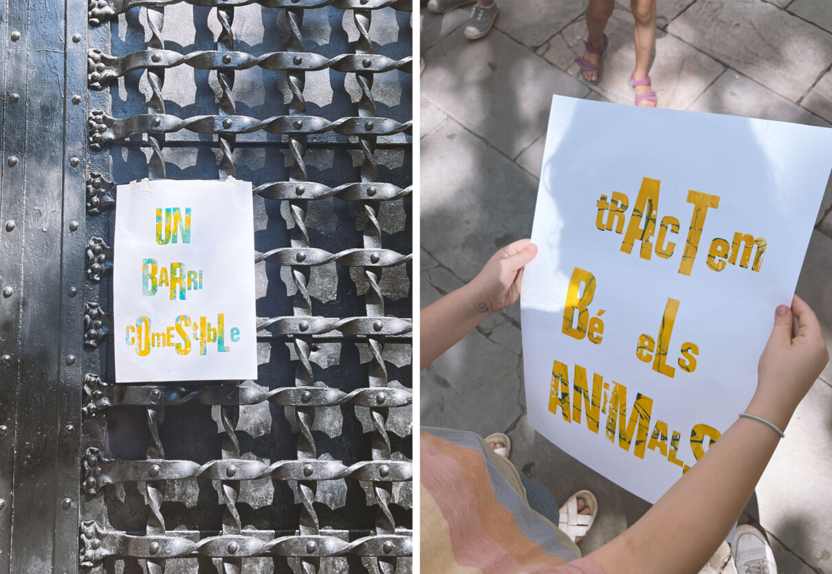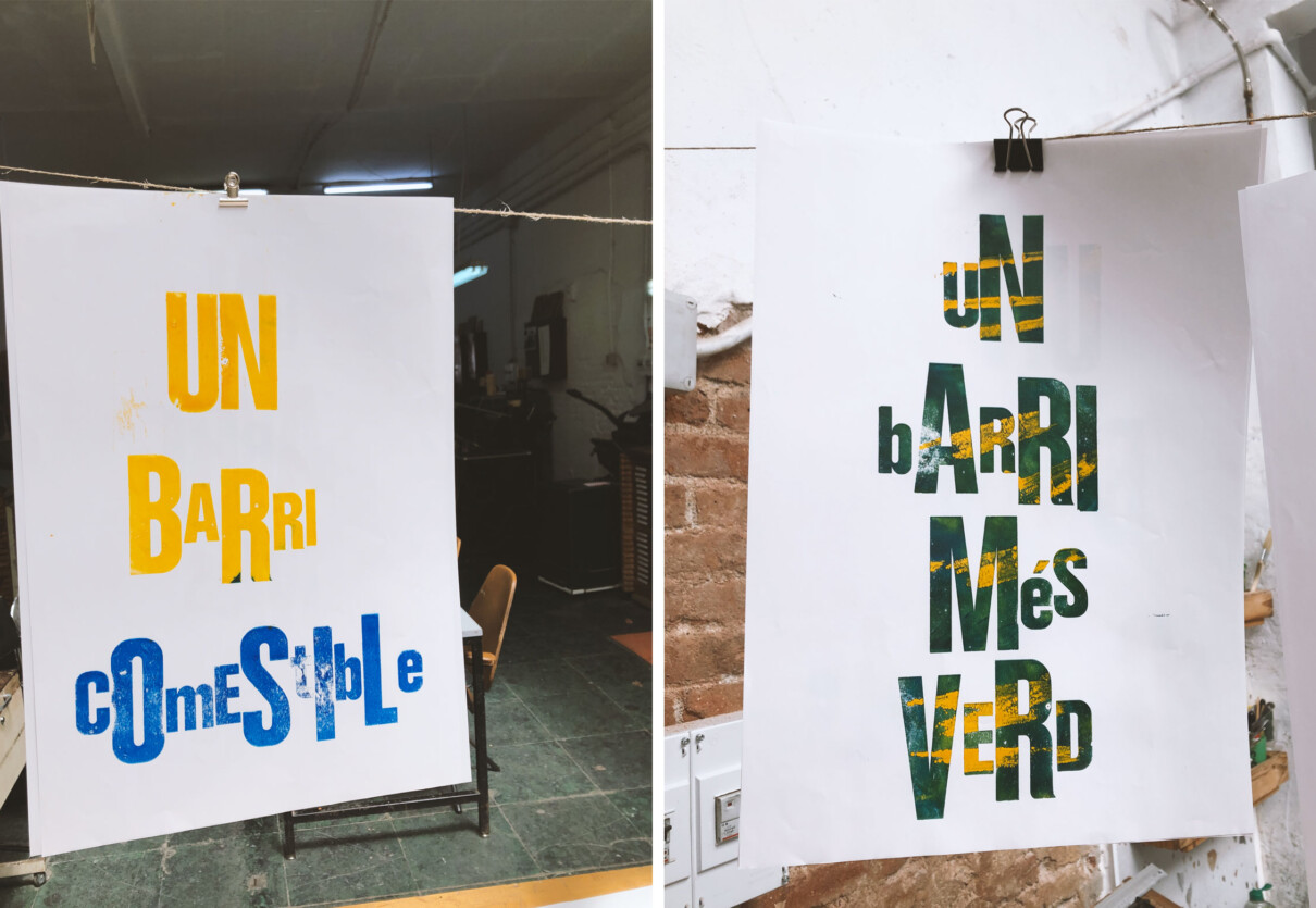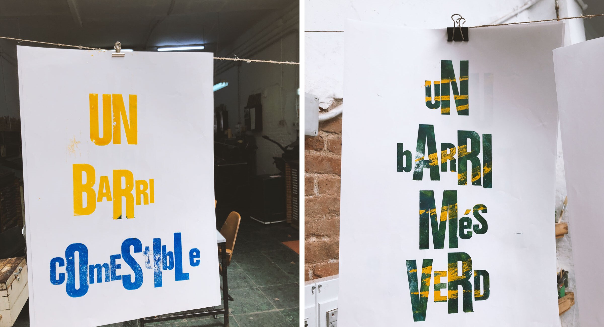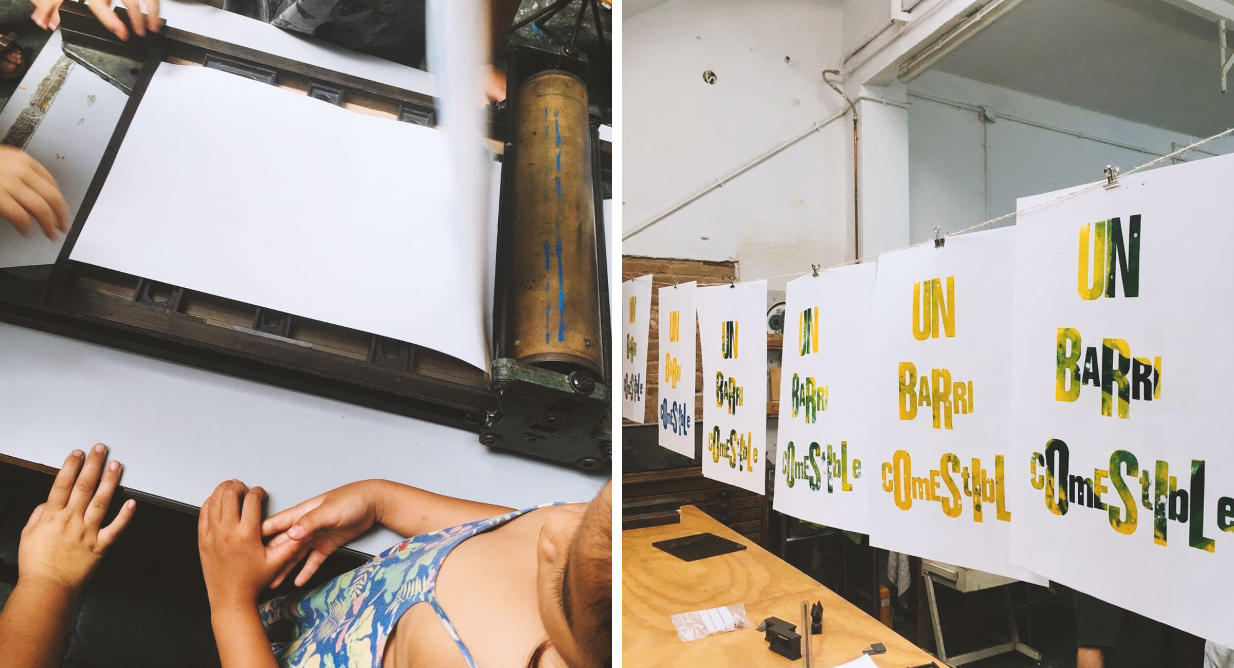 Taller amb tòrcul per al casal d’estiu d’EART on prèviament havien estat treballant els continguts, relacionats amb el canvi climàtic i la millora de l’entorn de proximitat del barri. Les frases seleccionades les van imprimir al tòrcul ells mateixos, permetent que cada nen i nena fes el procés d’entitat i d’impressió. Els cartells resultants es van penjar posteriorment arreu del barri i d’EART.